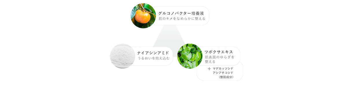 ヒト幹細胞上清液の働きを引き出すことを目的とし、うるおいを届けながら、肌なじみをサポートする3つの整肌成分〈バイタルコンディショニング成分〉 がアプローチ。